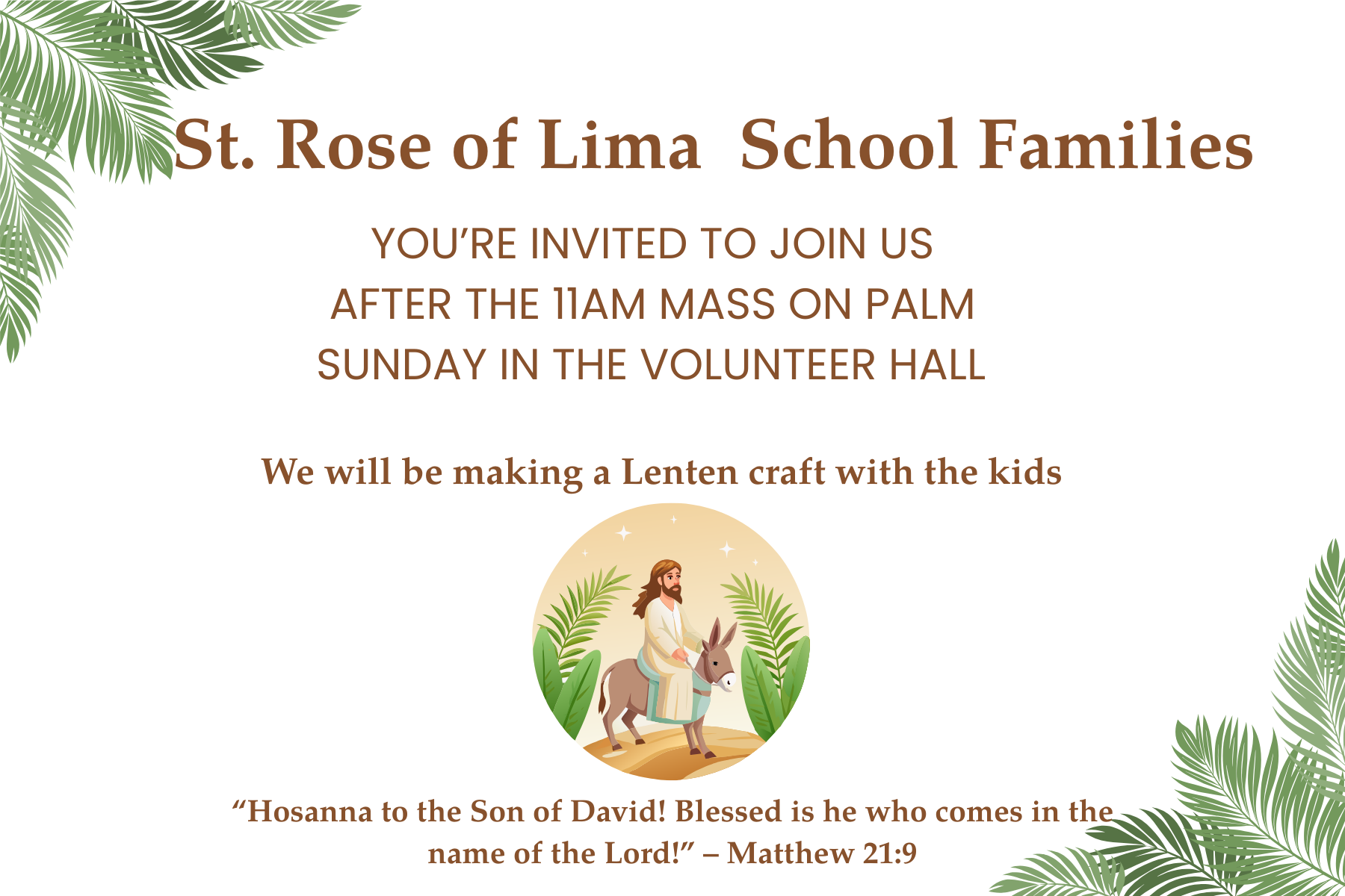 Join us for a Lenten activity for the children to start the beginning Holy Week